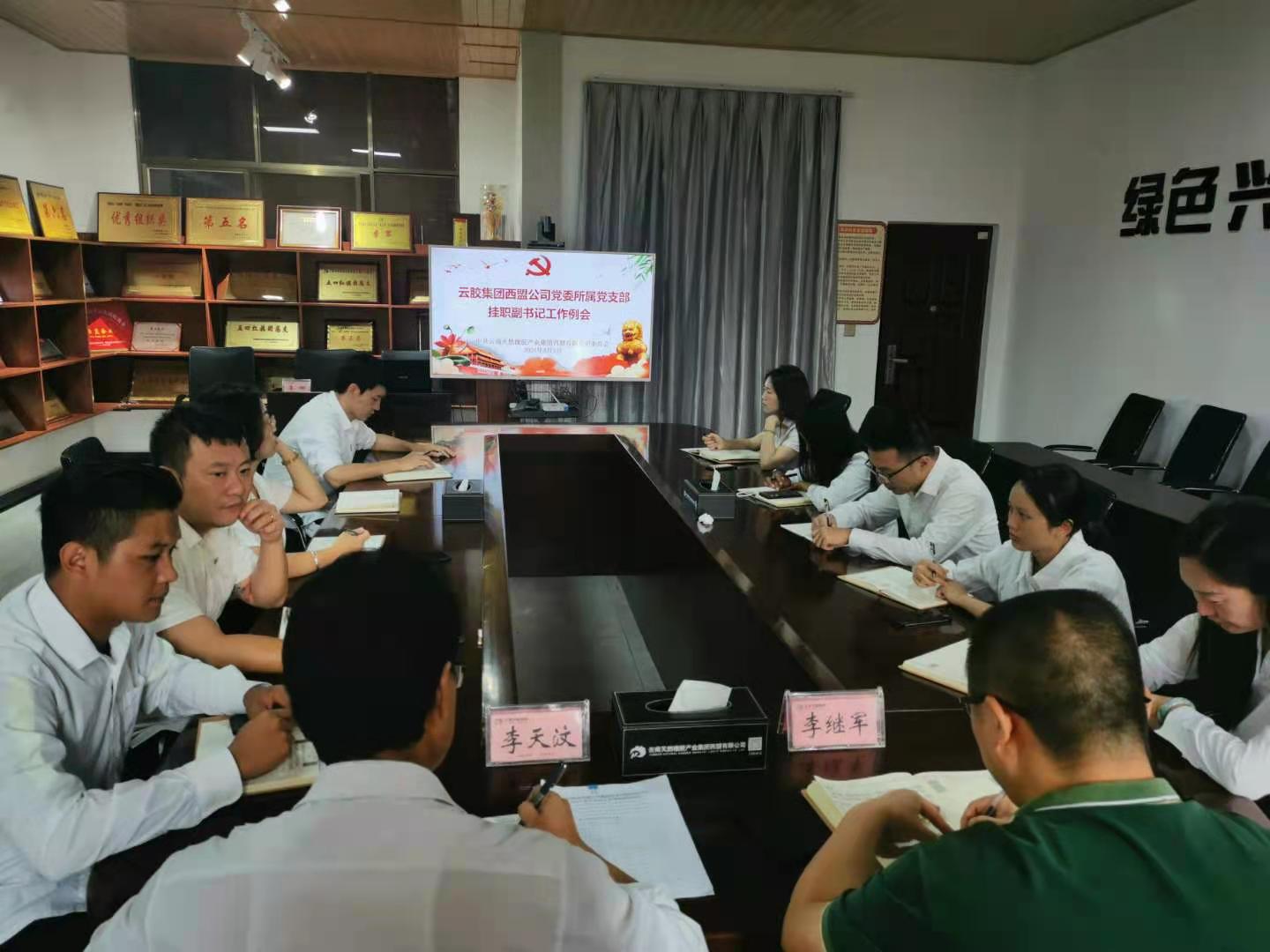 2021年8月3日上午,云胶集团西盟公司党委所属党支部挂职副书记工作例会在公司本部三楼会议室召开。公司党委副书记李继军出席会议并讲话,公司工会副主席、组织人事部副主任、机关党支部书记李天汶主持会议。公司所属各党支部挂职副书记共计10人参加会议。